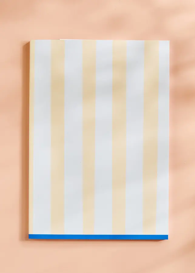 Soft and sunny, the Butter Stripe dot grid notebook features pale blue and butter-yellow stripes with a bold cobalt blue accent. It’s a clean, classic look that's equal parts Parisian café and seaside cabana.