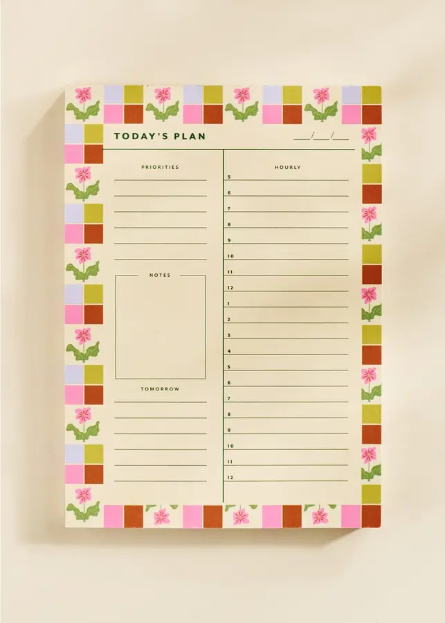 Checkered Flower Daily Planner Notepad - One & Only Paper