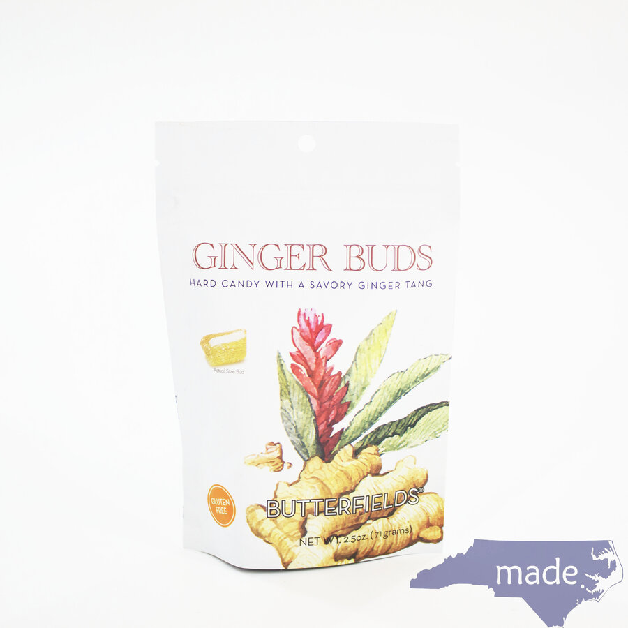 Butterfields Candies Ginger Buds – Butterfields Ginger Buds have that familiar zing of spicy ginger that freshens your palette after a delicious meal. The perfect pick-me-up after a meal you’ll find our ginger buds candies do more than please your tastebuds as the soothing effects of ginger calm and ease digestion. Butterfields Ginger buds candies are a fall favorite on many Thanksgiving tables, the perfect hostess gift or fall gift for that hard to find gift person on your list. Enjoy this 3-pack offering of our popular travel pack size and take them with you on the go.