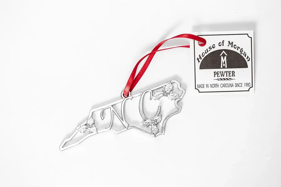 NC Holly State Outline Christmas Ornament - House of Morgan Pewter