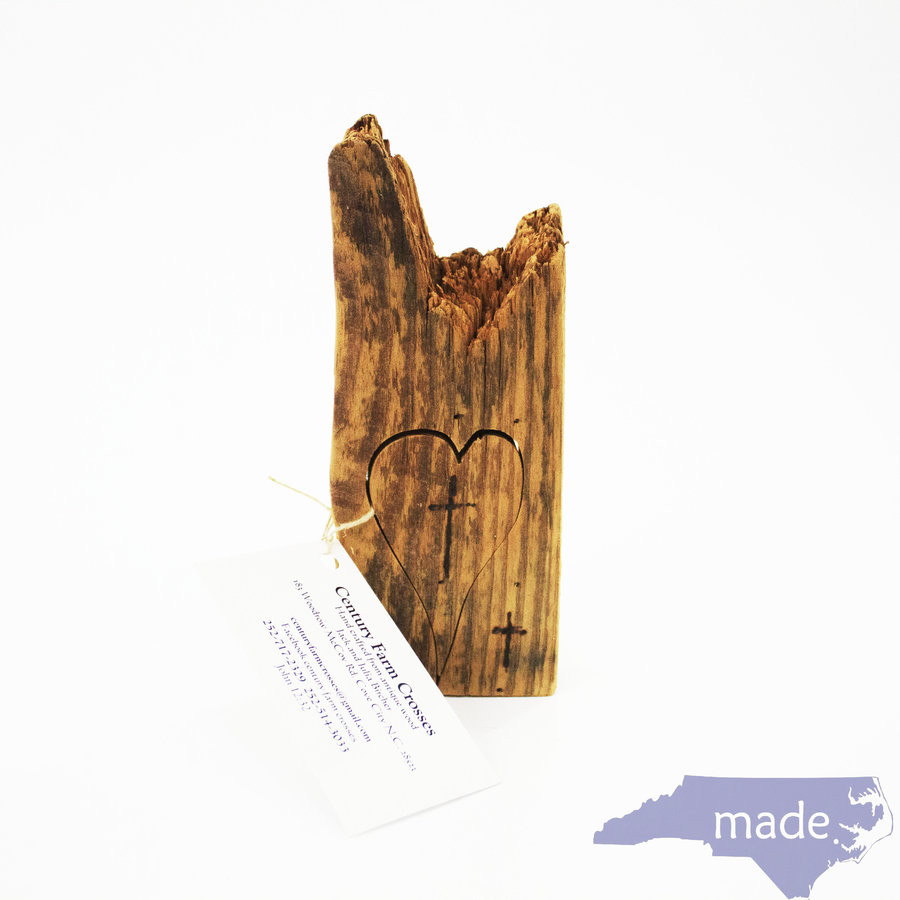 Our beautiful crosses are handcrafted from antique barn wood. Most of this repurposed wood is old growth pine, heart pine and other unique time worn boards. This 1896 McCoy Homestead has yielded a wonderful variety of precious wood. No two crosses are the same!